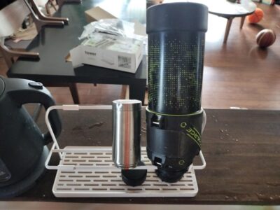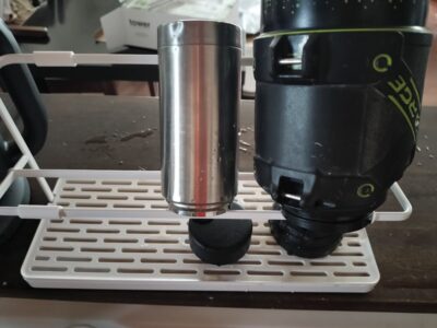 ちゃんと置き場所を作らないとということで、水筒置きを購入しました。