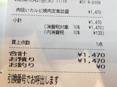 今回は「具だくさん肉吸いカルビ焼肉定食」
