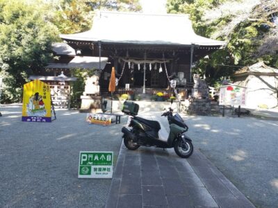 神社境内までバイクで乗り入れることが可能と素晴らしい。