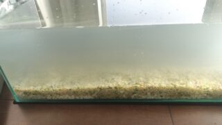 幅60cmの大きな水槽を購入し、砂利を入れます。 魚に優しい天然砂を2.5kg。さらにダイソーで購入した砂利も混ぜました。 砂利...